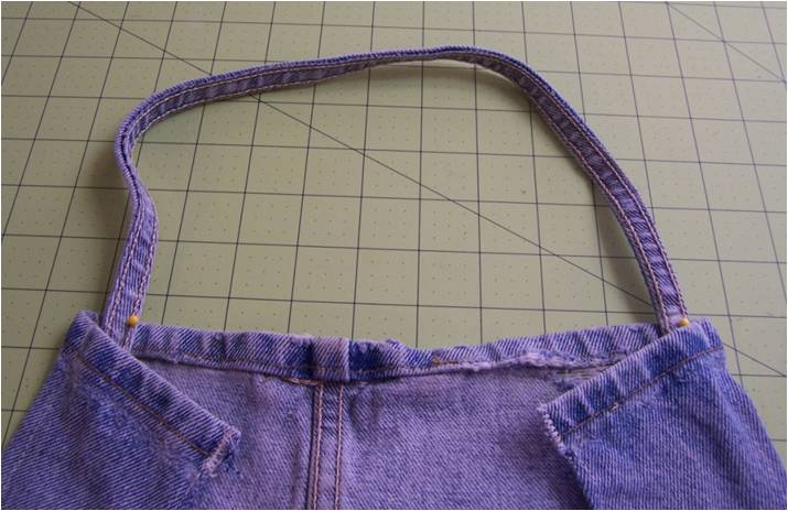 19. Cut the inseam (inner leg) seam off of the remaining jeans leg. This will be the neck strap.
