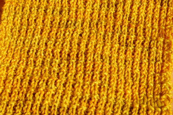 Repeat these four rows until the scarf is the length you want it to be. End with Row 2 and then bind off.