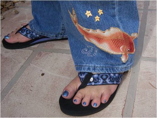 1. Decide what part of your fabric you want to make an applique from. I've decided to put a koi at the bottom of my jeans leg.